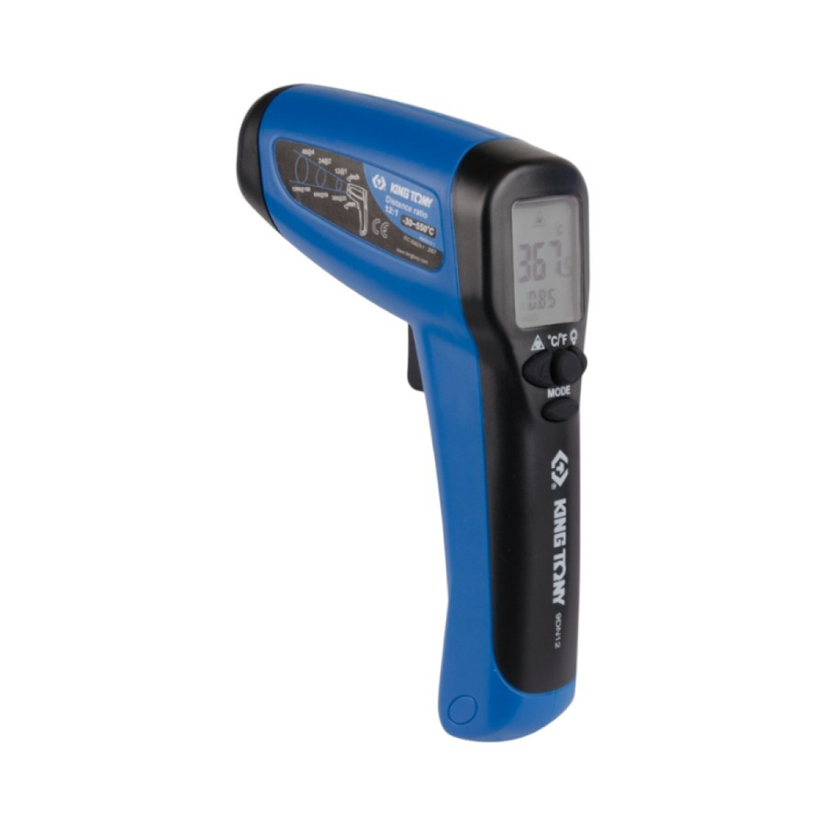 Термометр безконтактний, інфрачервоний, (пірометр) KING TONY (9DN12) — це професійний пірометр, призначений для швидкого та точного вимірювання температури поверхонь без фізичного контакту. Завдяки інфрачервоній технології прилад дозволяє зчитувати показники на відстані, що робить його незамінним у сервісних центрах, на виробництві та в автомайстернях.