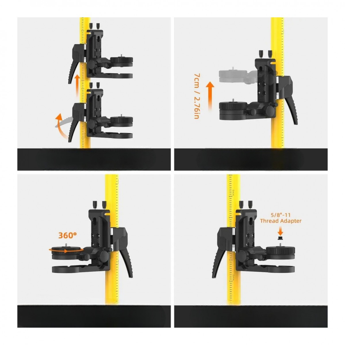 - Сумісність з більшістю лазерних рівнів (різьба 1/4"-20 та адаптер 5/8"-11)