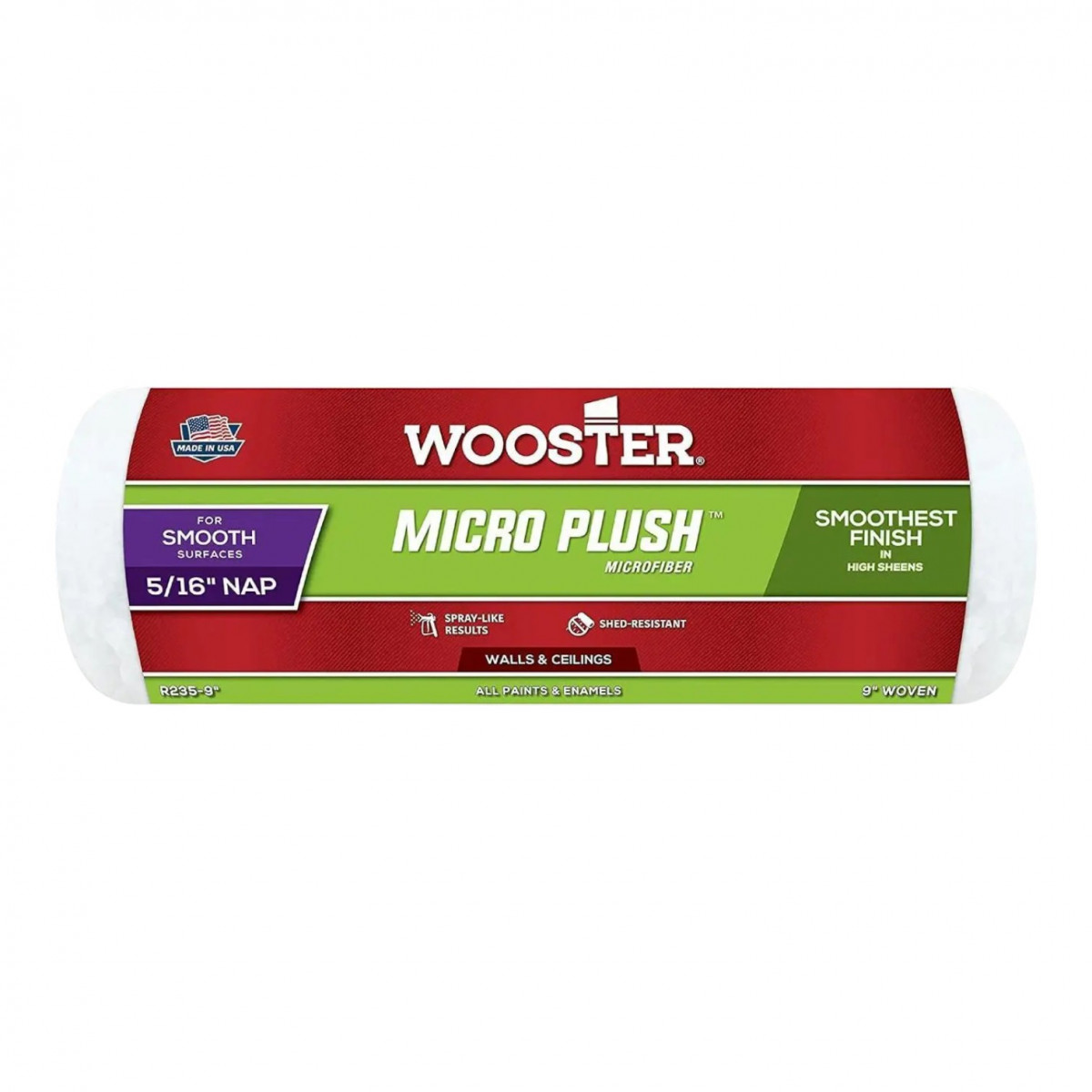 Малярний валик Wooster Micro Plush Microfiber (ТКАНИНИЙ) 23 см (9”) ворс 8 мм (5/16”) (R235)