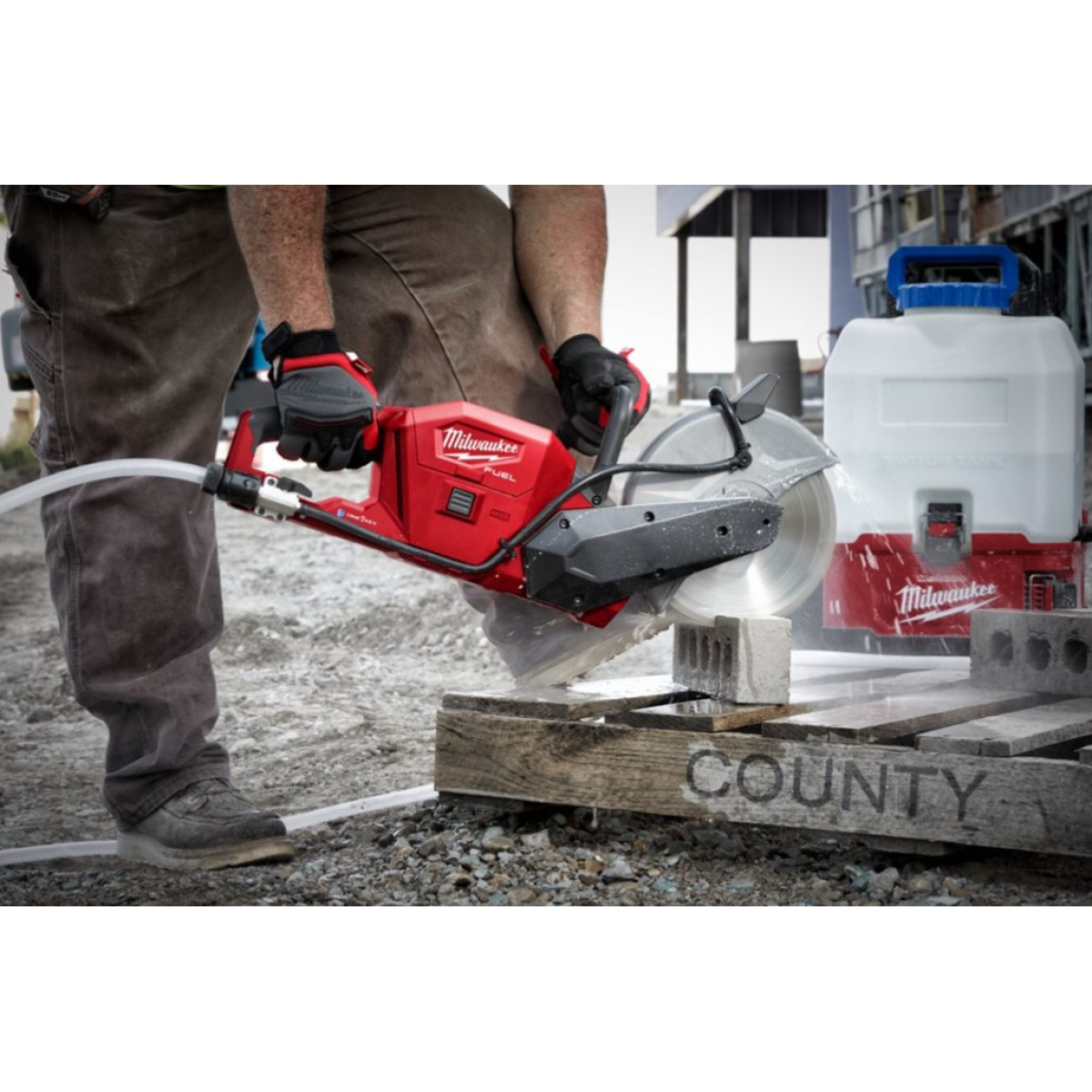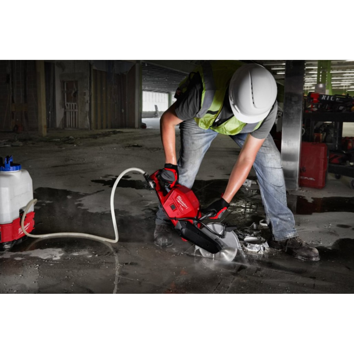 Перша 18 В акумуляторна відрізна машина 230 мм. Забезпечує достатню потужність для різання армованого бетону. На 50% легше бензинових аналогів