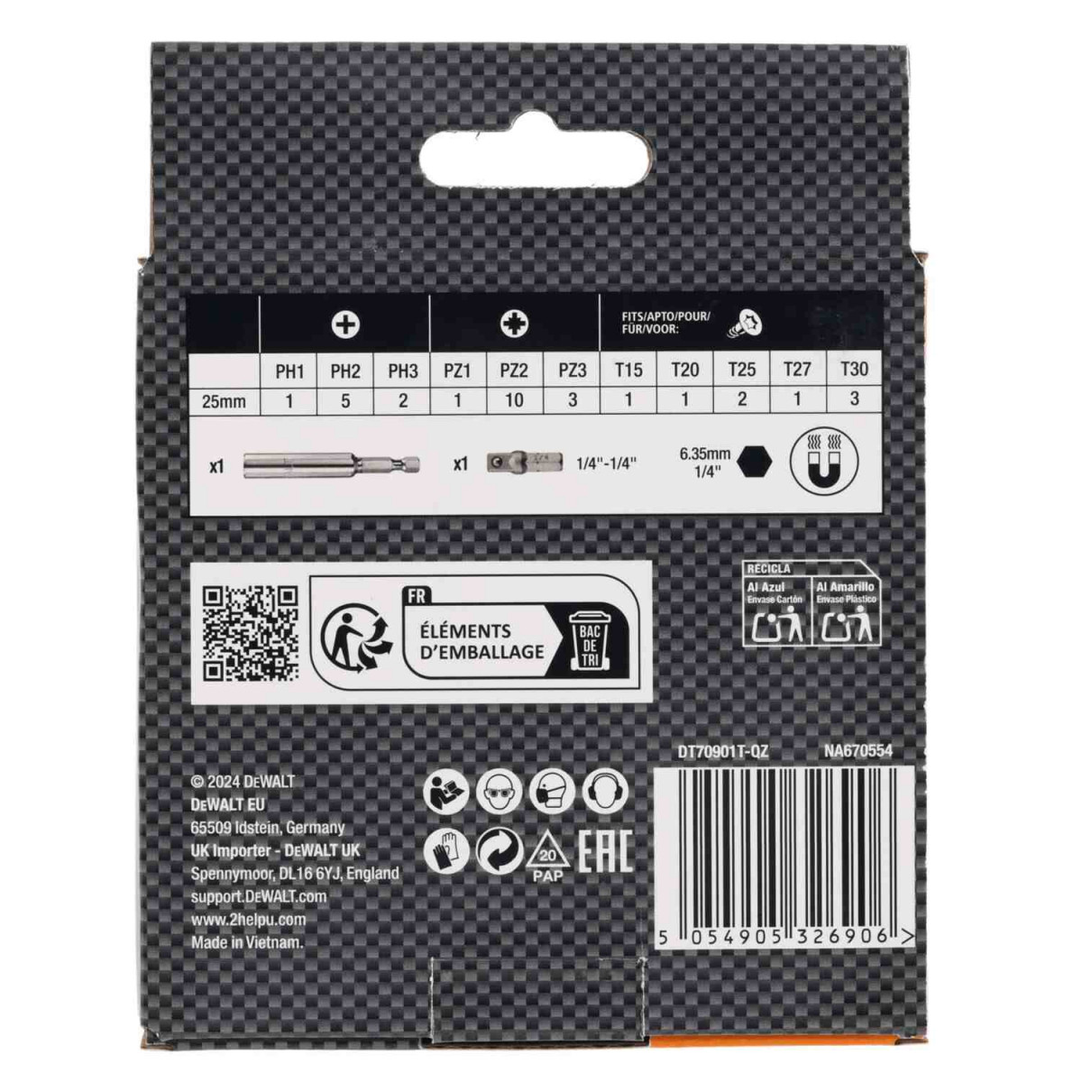 Набір біт DeWALT DT70901T FLEXTORQ — це професійний комплект із 32 предметів, розроблений у співпраці з командою McLaren F1 Team. Біти належать до лінійки FLEXTORQ, що означає підвищену стійкість до ударних навантажень і деформації, що робить їх ідеальними для використання з потужними ударними шуруповертами (Impact Drivers).