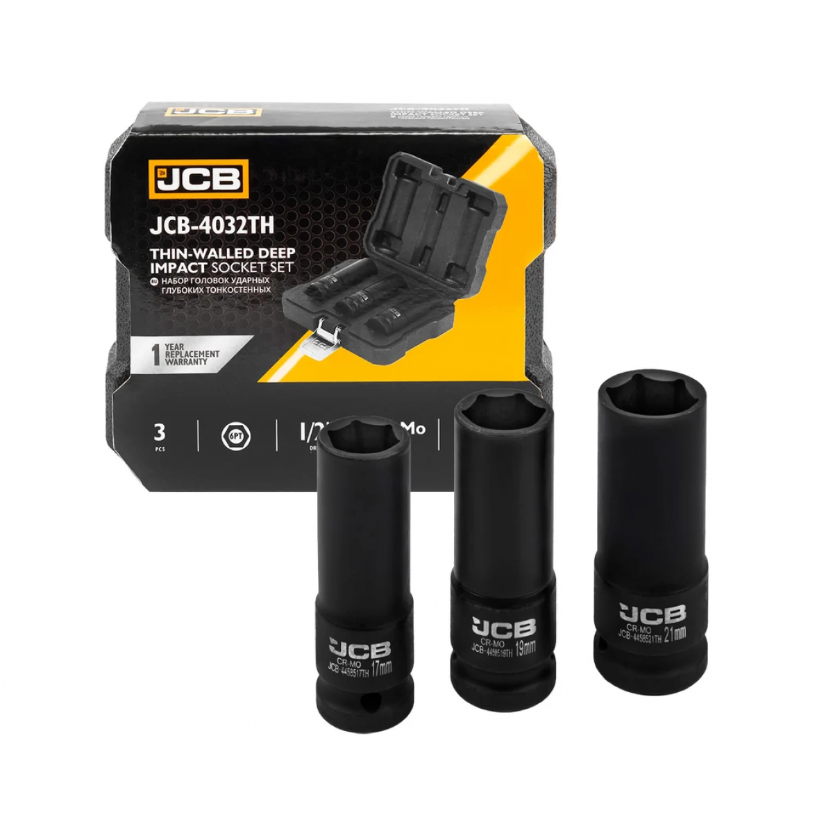 Набір головок глибоких ударних тонкостінних 3 од. 1/2" (6-гр.) JCB Tools JCB-4032TH