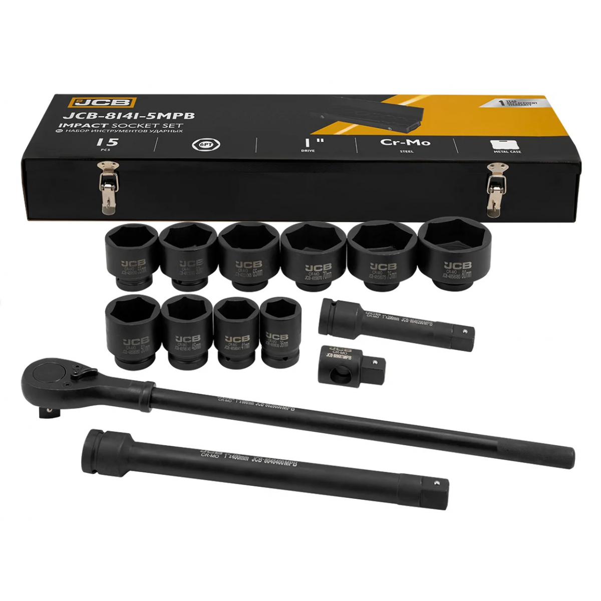 Набір інструментів ударних в металевому кейсі 15 пр. 1" (6-гр.) (36-80 мм) JCB Tools JCB-8141-5MPB