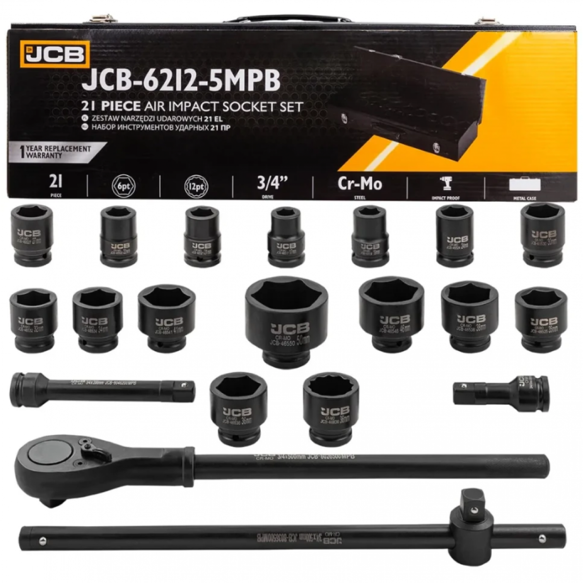 Набір інструментів ударних в металевому кейсі 21 пр. 3/4" (6-гр.) (17-50 мм) JCB Tools JCB-6212-5MPB