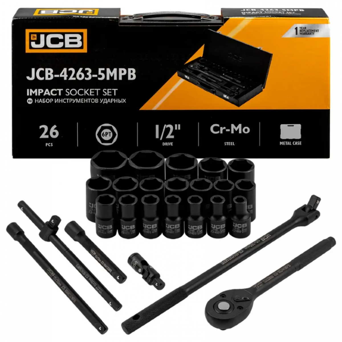 Набір інструментів ударних в металевому кейсі 26 пр. 1/2" (6-гр.) (8-32 мм) JCB Tools JCB-4263-5MPB