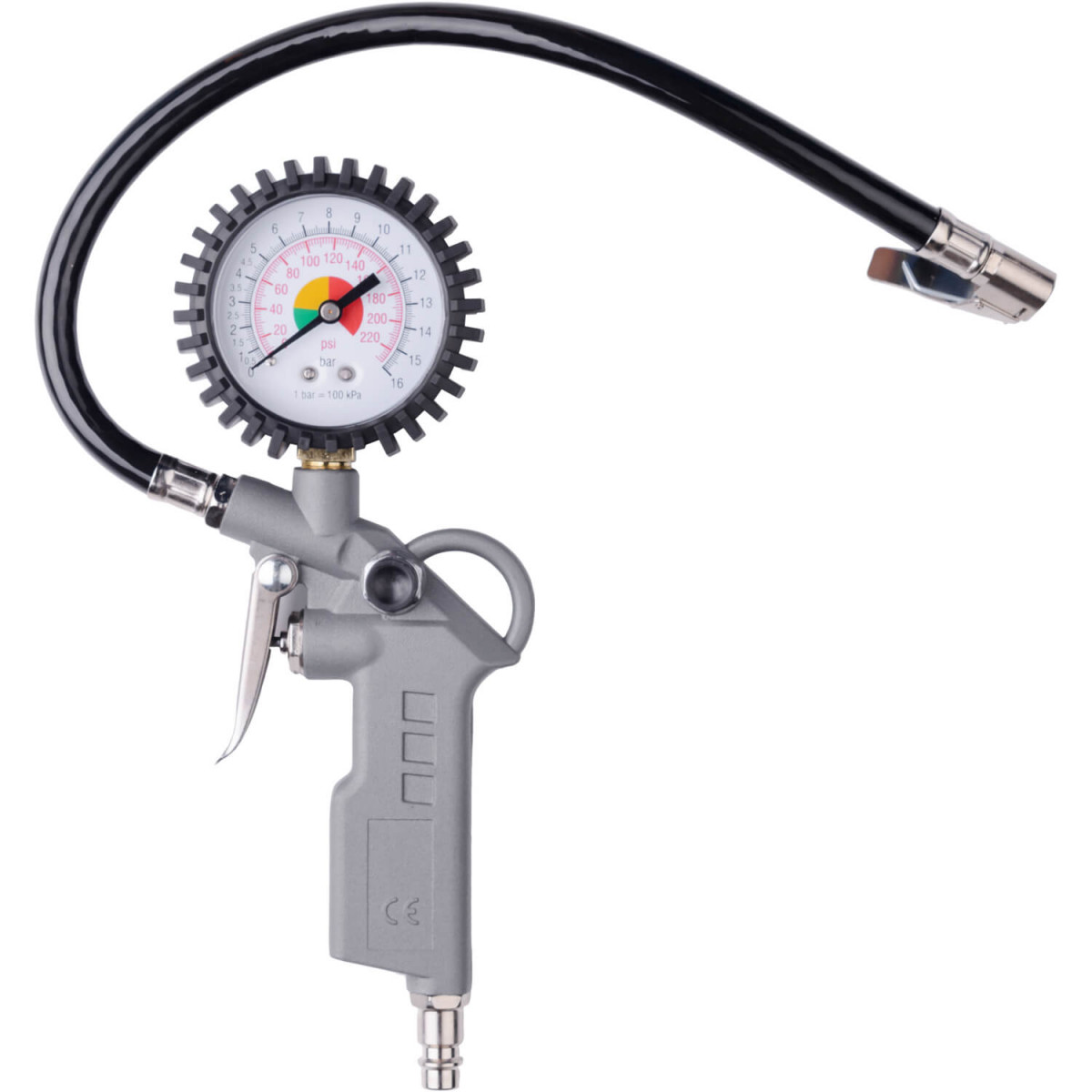 Пістолет для підкачки коліс: Оснащений манометром для контролю тиску. Незамінний для перевірки та підкачки шин автомобілів, мотоциклів, велосипедів та іншого транспорту.