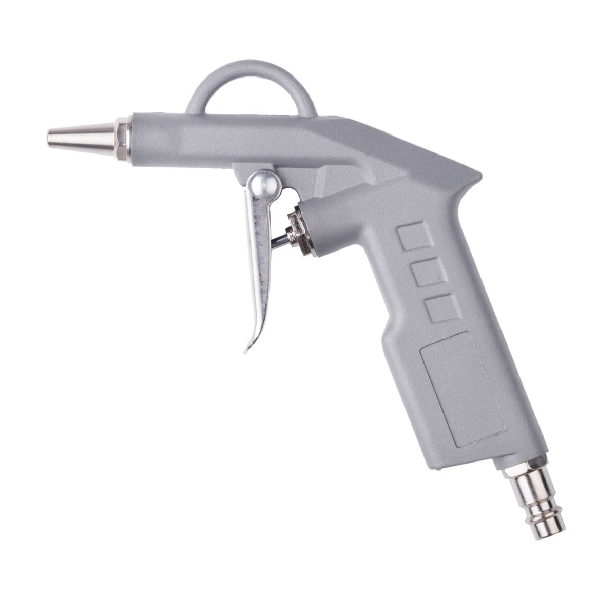 Продувний пістолет: Використовується для швидкого та ефективного очищення робочих поверхонь, інструментів, вузлів та деталей від пилу, бруду та вологи за допомогою спрямованого потоку стисненого повітря.