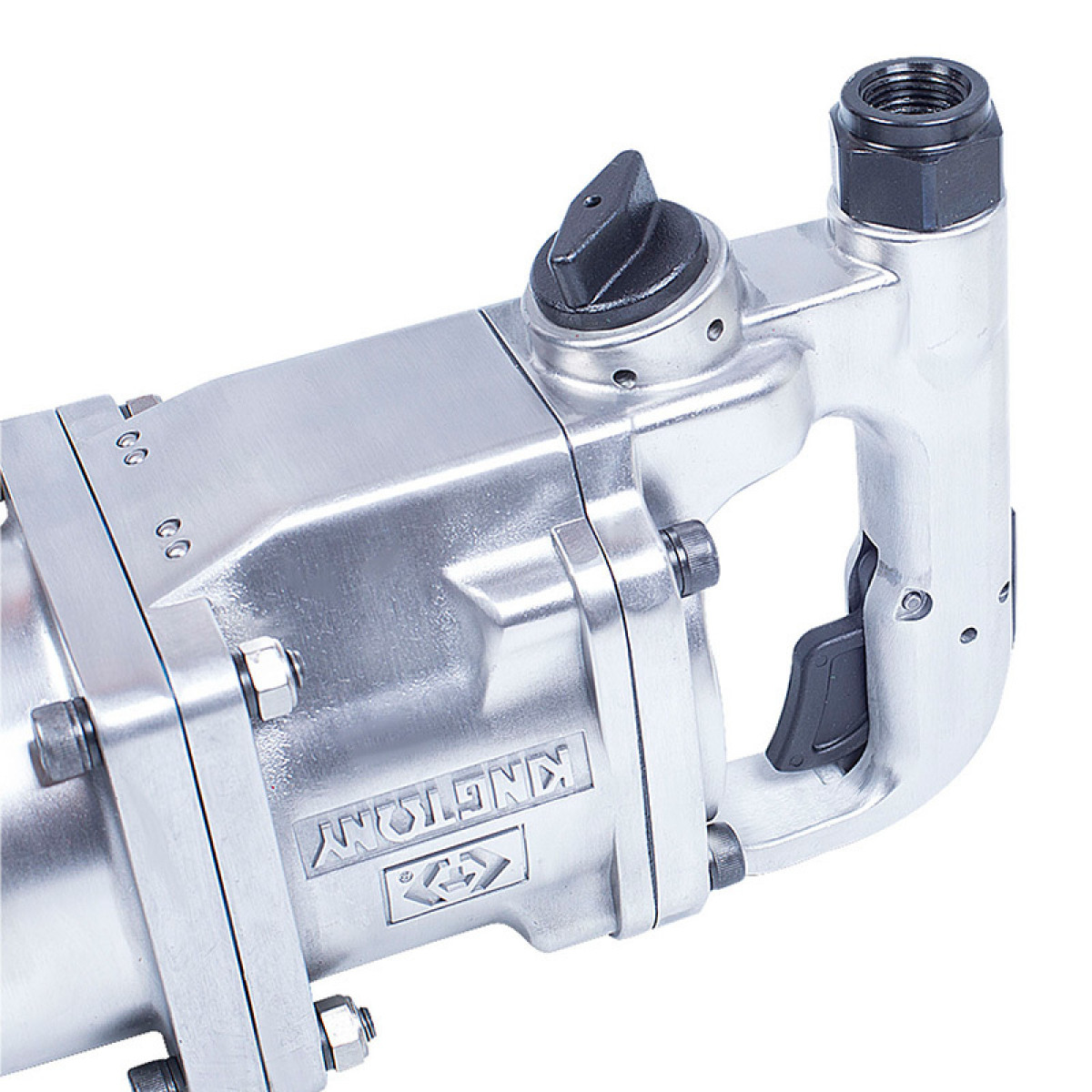 Пневматичний гайковерт 1" King Tony (33812-150) з довгим валом – це ручний інструмент для роботи з елементами кріплення. Використовується для закручування або відкручування гайок і болтів. автосервіс, будівництво, виробництво. Купити пневматичний гайковерт Кінг Тоні 33812-150 Виготовлено інструмент із міцного алюмінієвого сплаву. Завдяки чому, гайковерт отримав малу вагу та досить компактні розміри. З інструментом зручно працювати у важкодоступних місцях. Комфорт в експлуатації гарантує наявність другої рукоятки збоку. У гайковерта чудові показники потужності. Є ударний механізм "Подвійний молот". Купити гайковерт 33812-150 вигідно за ціною, якістю та зручністю в обслуговуванні. Під нього можна купити ремонтні комплекти та вали різної довжини.