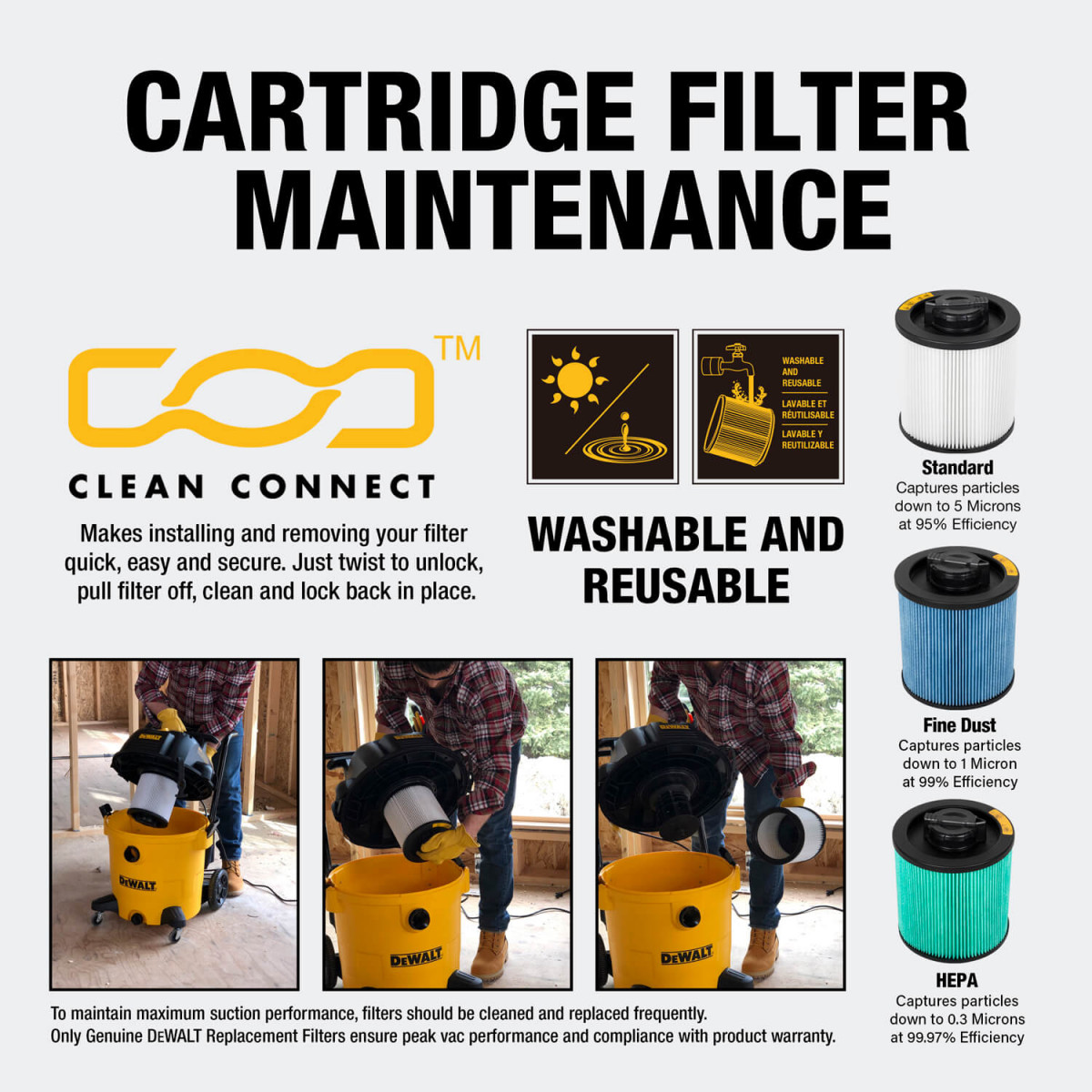 Фільтрація: У комплекті постачається картриджний фільтр Clean Connect™, який легко миється та підходить для збору дрібного пилу.