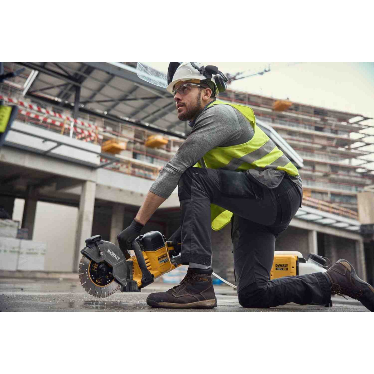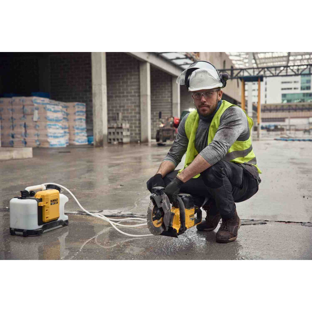 Вбудований електричний насос живиться від акумуляторів DeWALT 18 В XR або FLEXVOLT, забезпечуючи надійну та рівномірну подачу води. Резервуар має просту панель керування і сумісний із системою Wireless Tool Control (WTC), що дозволяє автоматично вмикати подачу води при активації сумісного інструменту (наприклад, деяких моделей різаків).