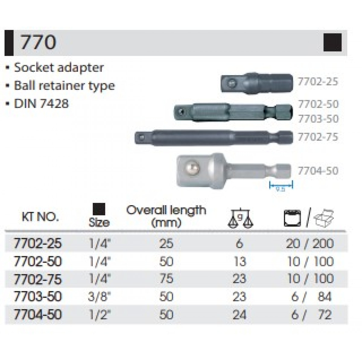 Заміна на 7723-50 !Перехідник 1/4">3/8" – адаптер для ручного інструменту, що дозволяє поєднувати змінні торцеві головки формату 3/8" з пристроями, що мають посадковий квадрат 1/4". Для швидкого знімання є кульки у корпусі перехідника. Шестигранна конструкція додає зручності роботі у важкодоступних місцях. Виробник: King Tony Країна виробник: Тайвань Матеріал: легована сталь (хром, ванадій) Тип інструменту: кульовий адаптер Оздоблення: піскоструминна обробка, антикорозійне мастило Розмір: довжина 50 мм Вага: 23 грами Кількість перехідників в упаковці – 6, у ящику – 84 штуки.