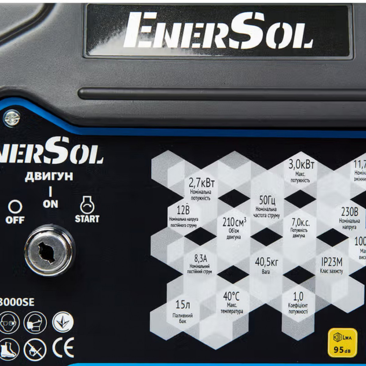 Генератор бензиновый с электростартером EnerSol 210 кубов, 230В, 2.7 кВт. (EPG-3000SE) — надежный источник резервного питания, предназначенный для использования в быту, на строительстве или в мастерских. Оснащен мощным двигателем EnerSol ES-210G объемом 210 см³ и электростартер для удобного запуска. Обеспечивает стабильную работу электроприборов благодаря системе AVR и медному альтернатору.