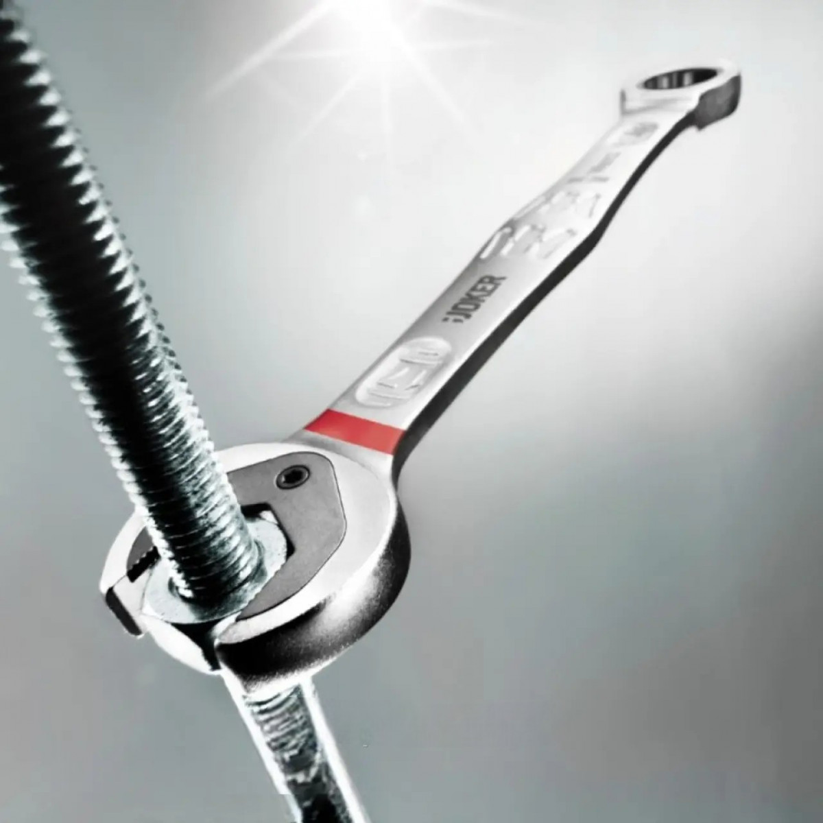 Комбинированный ключ с реверсивной трещоткой WERA Joker Switch 6001, 8 мм (05020064001) – это высококачественный инструмент нового поколения с изогнутой реверсивной трещоткой и переключателем направления вращения. Предназначенный для шестигранных винтов и гаек, ключ обеспечивает быструю и точную работу даже в ограниченном пространстве. Благодаря специальной конструкции и сменной металлической пластине в рожковой части ключ надежно фиксирует болты и гайки, уменьшая риск их проскальзывания. Дизайн ключа позволяет передавать высокие моменты силы и эффективно работать с инструментом даже под большой нагрузкой.