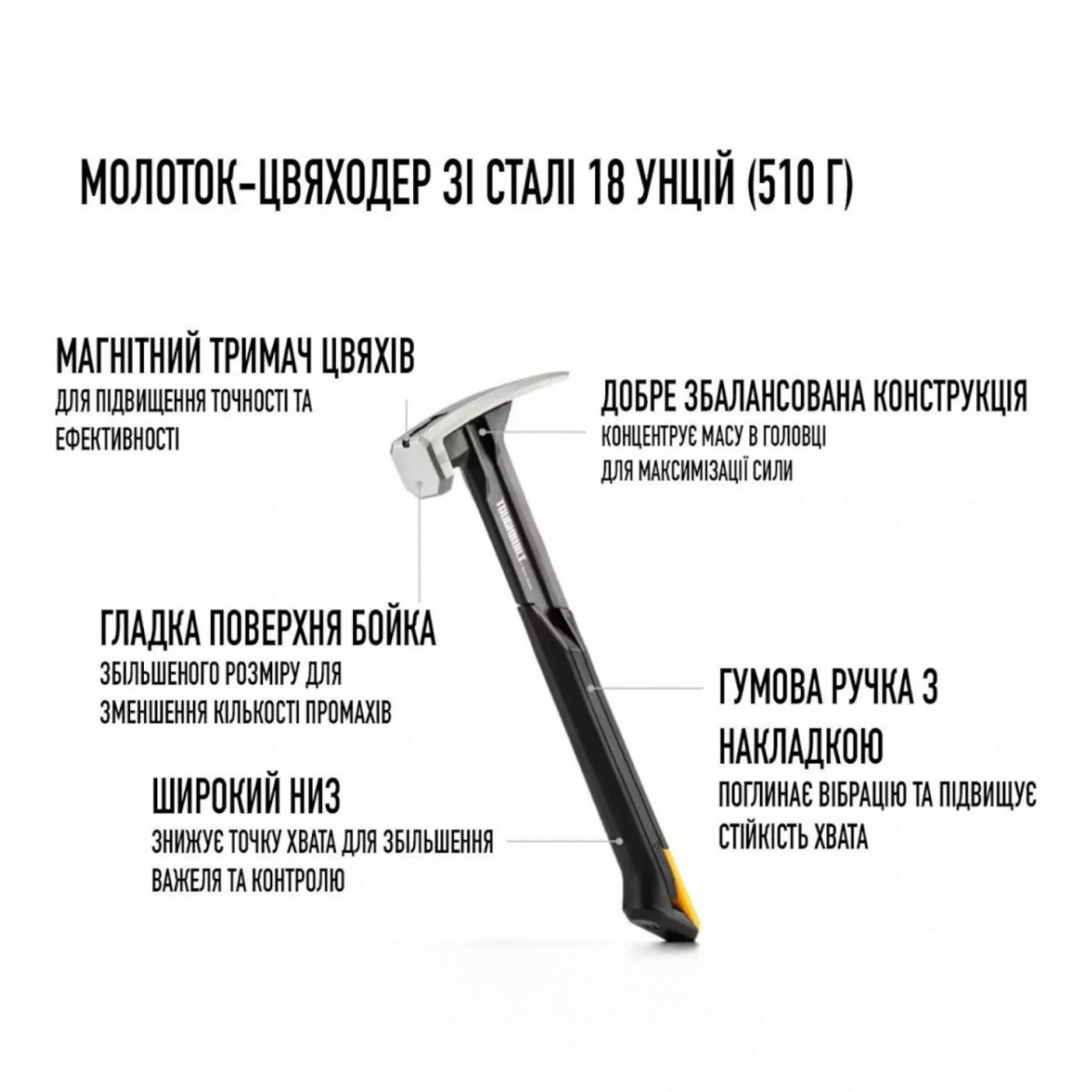 Особенности: Магнитный держатель гвоздей, увеличенная ударная поверхность