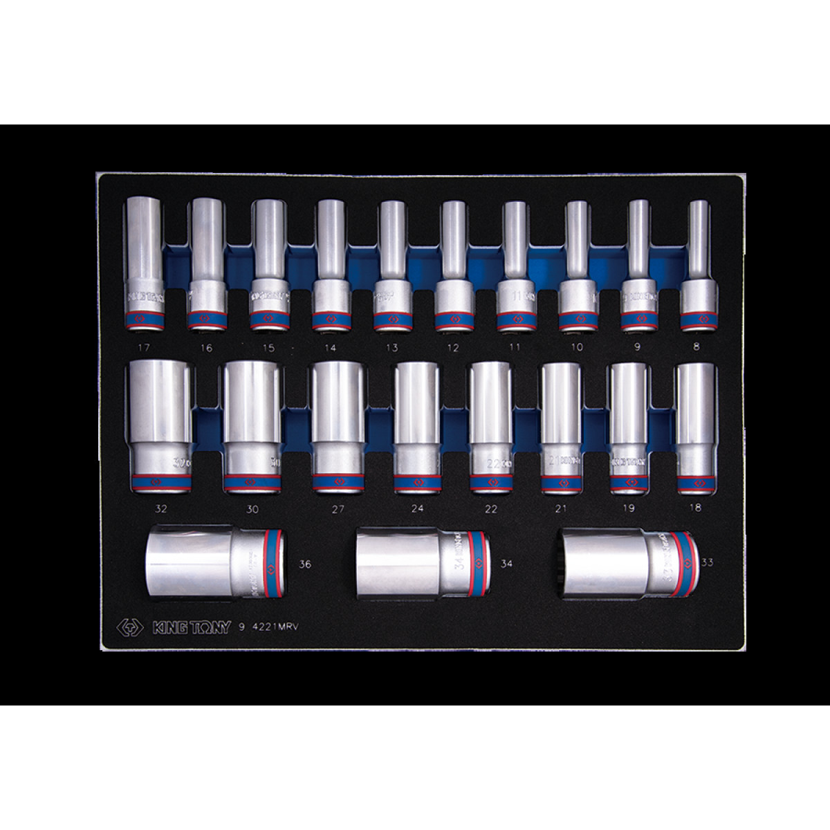 Набір торцевих головок 1/2" 12 гранн подовжених 21ед (08-36mm) EVA в ложементі