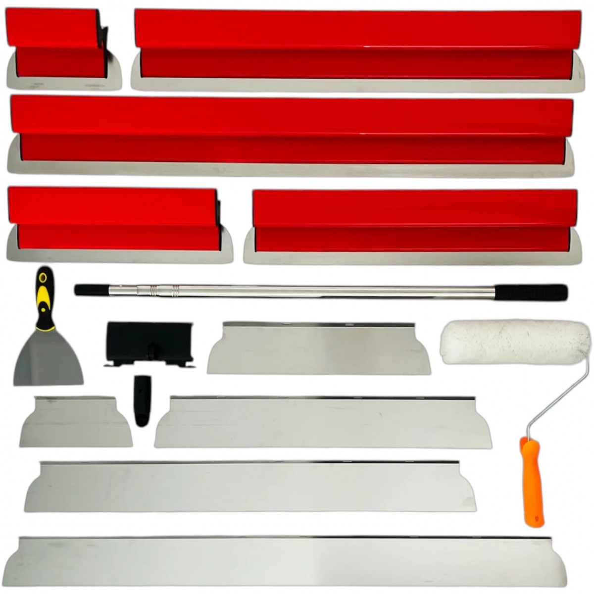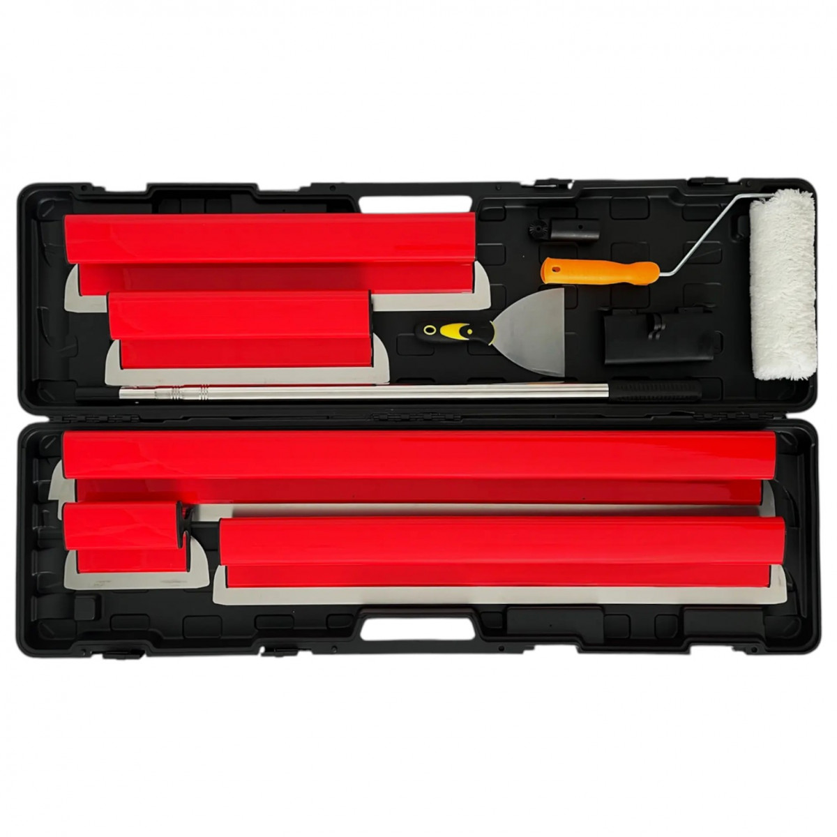 Набор шпателей Com-Plex, 20/40/60/80/100 см со сменными лезвиями (пластиковые) (UT0163) — профессиональный комплект для отделочных работ. Включает несколько шпателей разной ширины, сменные лезвия разной жесткости и телескопический удлинитель, что делает набор универсальным для шпаклевки, финишного выравнивания и нанесения декоративных покрытий.