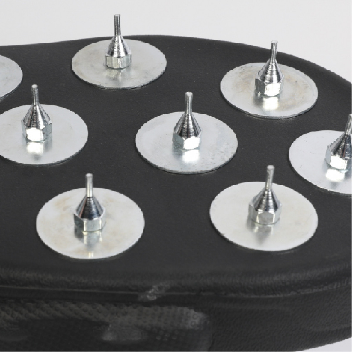 Оптимальное количество и длина шипов: Каждая пара оснащена 32 шипами длиной 20 мм, что обеспечивает равномерное распределение веса, предотвращает продавливание и позволяет эффективно работать со слоем наливного пола.