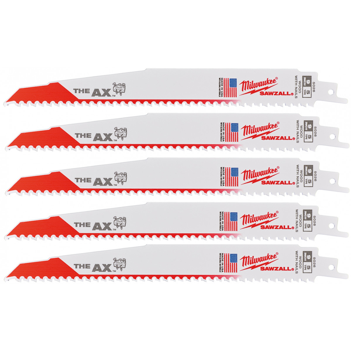 Полотно для сабельных пил MILWAUKEE AX FANG TIP, 230х5,0мм, (5шт), (дерево с гвоздями) (48475026)
