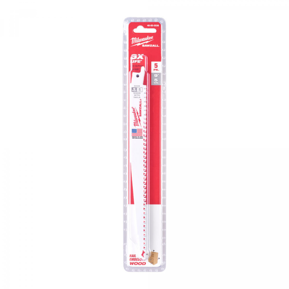 Полотно для сабельных пил MILWAUKEE THIN KERF FANG TIP, 230х5,0мм, (5шт), (дерево с гвоздями) (48475036)