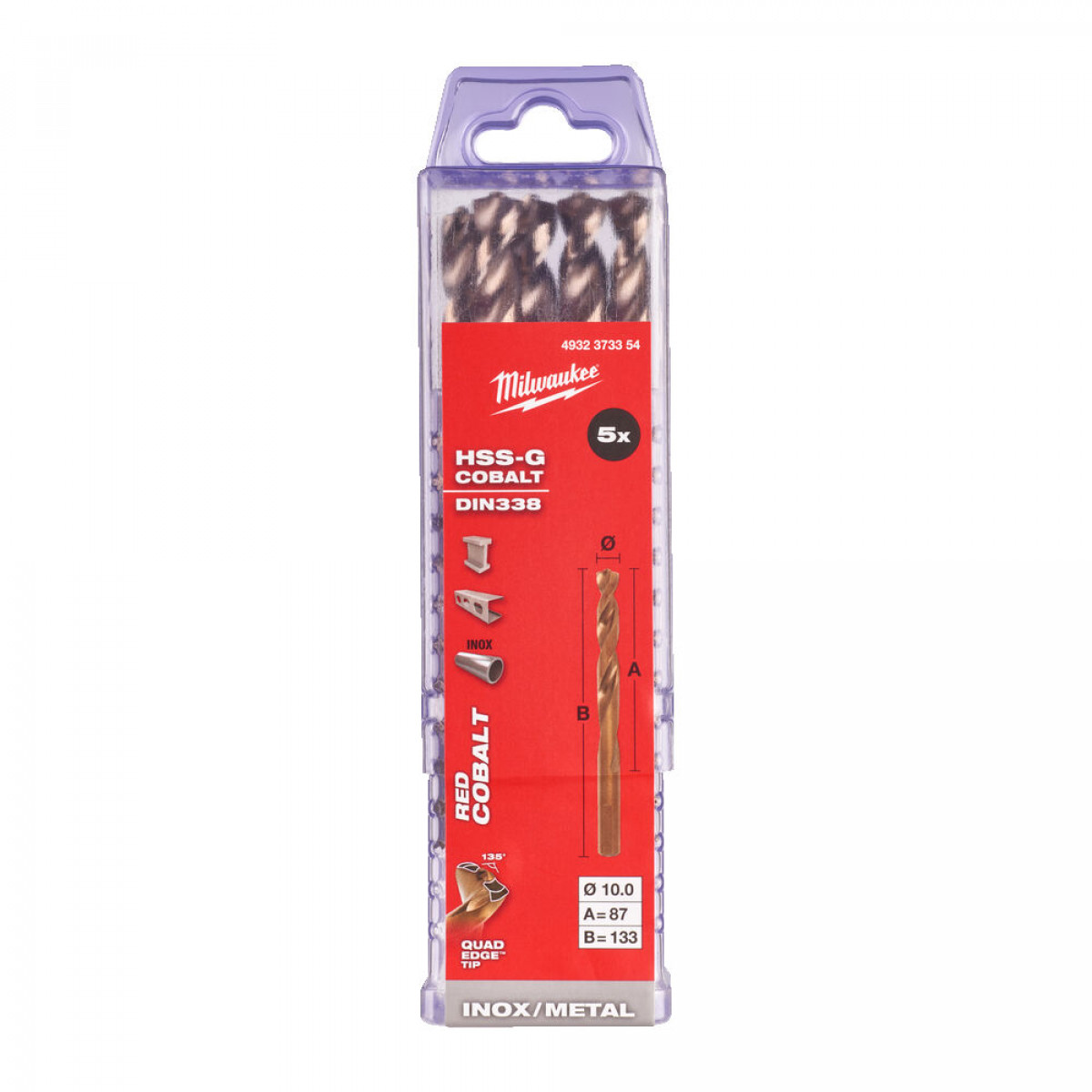Сверло по металлу HSS-Co MILWAUKEE, DIN338, Ø10,0х133х87мм, (5шт)