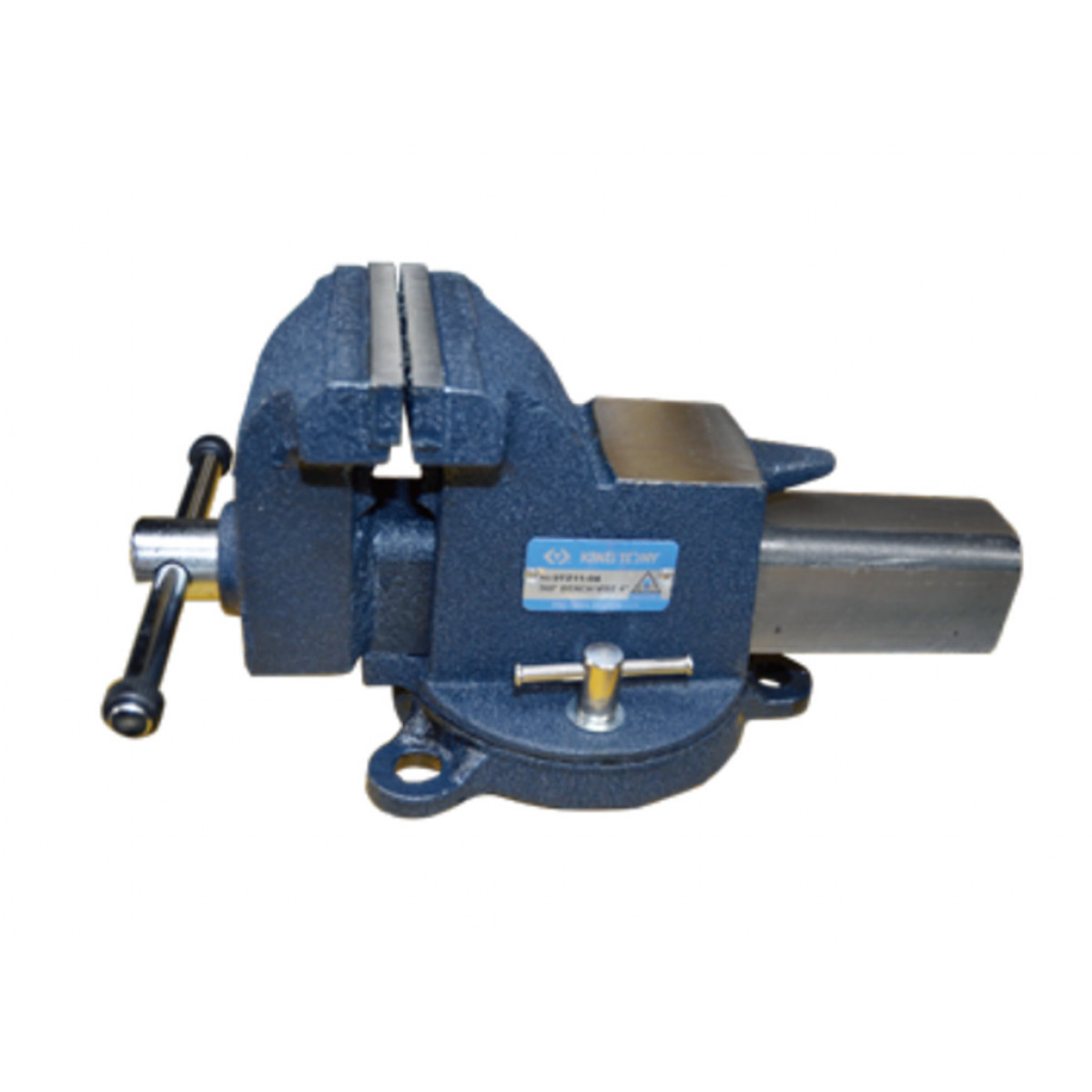 Купити тиски слюсарні Кінг Тоні 9TZ11-06 Особливості цих лещат у зручності експлуатації, надійності та доступній ціні. Конструкцію можна кріпити на будь-який тип поверхні та працювати з габаритними чи дрібними деталями. Корпус лещат виготовлений із сталі (метод лиття). Є захисне покриття основи порошковою фарбою. Гвинт чавунний. Захоплення зубчасте, сталеве, можна використовувати м'які накладки для делікатних операцій. Рукоятка вільно переміщається в головці гвинта. В основі лещат є ковадло для роботи з ударним інструментом. Конструкція розбірна, що обслуговується. Технічні характеристики поворотних лещат King Tony 9TZ11-06: · Загальна довжина лещат – 422 мм.· Ширина (за захоплюючими губками) – 155 мм (6”).· Граничне розсування захватів – 200 мм (хід гвинта). · Вага лещат – 14.5 кг.