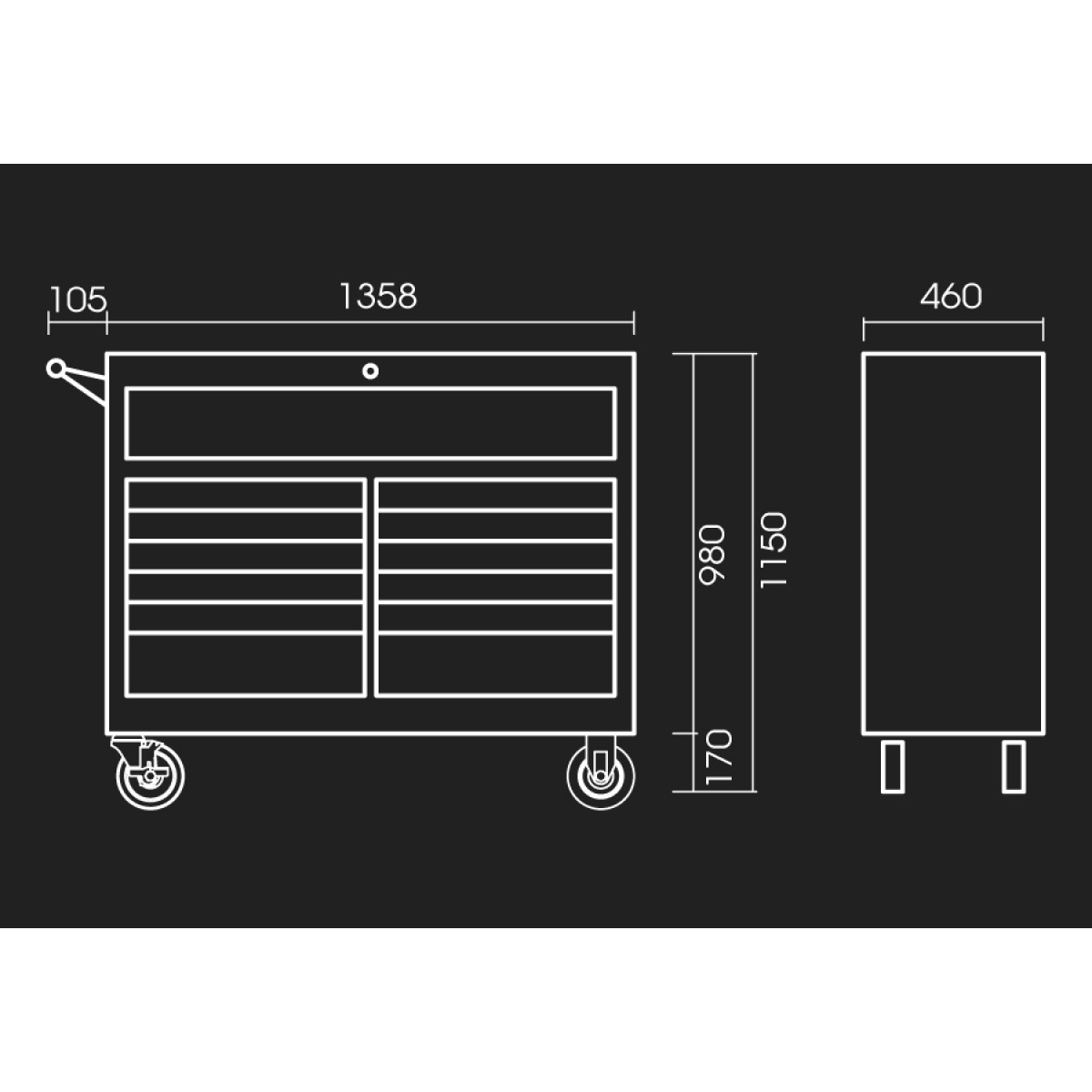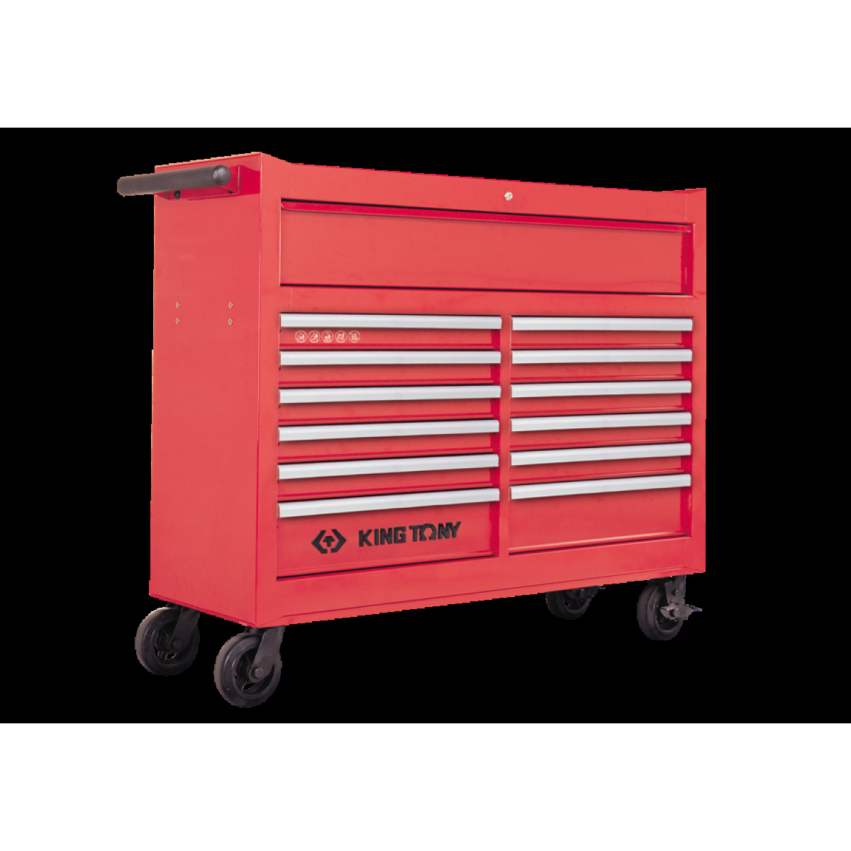 Візок інструментальний 13 полковий 87435-13B Select or deselect all Артикул 87435-13B 10 Drawer 576 x 380 x 75 2 Drawer 576 x 380 x 154 1 Drawer 576 x 380 x 75 600 кг 166 / 31.54 Тумба інструментальна 13 полична – мобільне робоче місце слюсаря на станції ТО чи гаражі транспортного підприємства. Конструкція передбачає надійне зберігання та транспортування ручного інструменту. Тумба частково замінить робочий стіл або візок з обмеженою вантажопідйомністю. Оснащення ідеально впишеться в інтер'єр автомайстерні, за наявності робочих модулів для зберігання інструменту. Надійність та комфортабельність у роботі – критерії, що описують інструментальну тумбу King Tony. Міцна зварна конструкція з легованої інструментальної сталі пофарбована захисною фарбою, що запобігає корозії металу. Висувні ящики надійно фіксуються стопорними пристроями, що перешкоджають довільному відкриття під час транспортування. Тумба інструментальна 13 полична King Tony обладнана колісною базою та зручною рукояттю для транспортування. Ролики з поліуретану додають стійкості мобільної конструкції, крім перекидання. На колесах передбачено стопорний механізм. Для надійного зберігання тумба оснащується захисним механізмом. Антивандальна система допоможе зберегти в цілісності дорогий ручний інструмент.