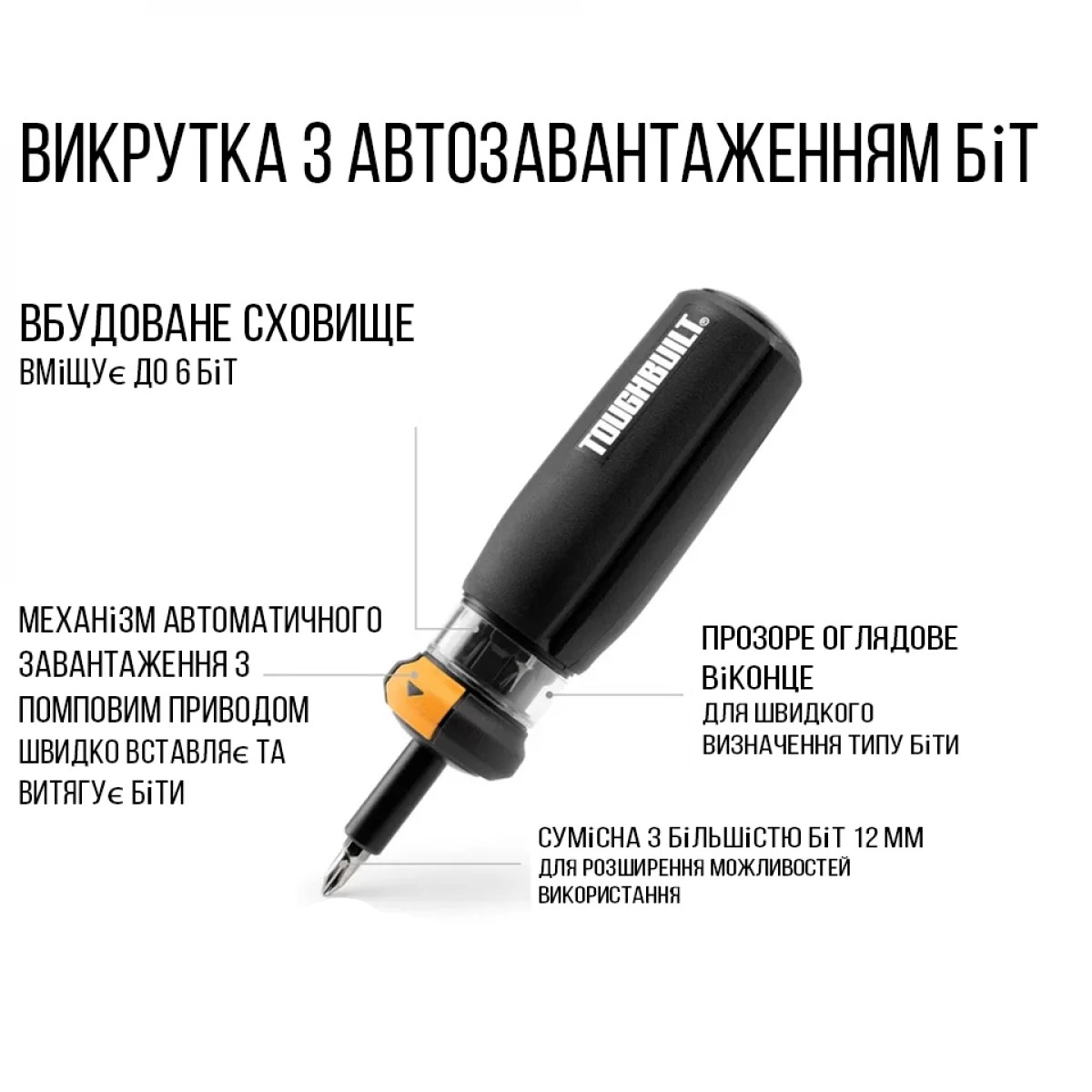 TOUGHBUILT® Отвёртка с автозагрузкой бит 6-в-1, PH/SL/SQ, магнитная (TB-H5-M-01)