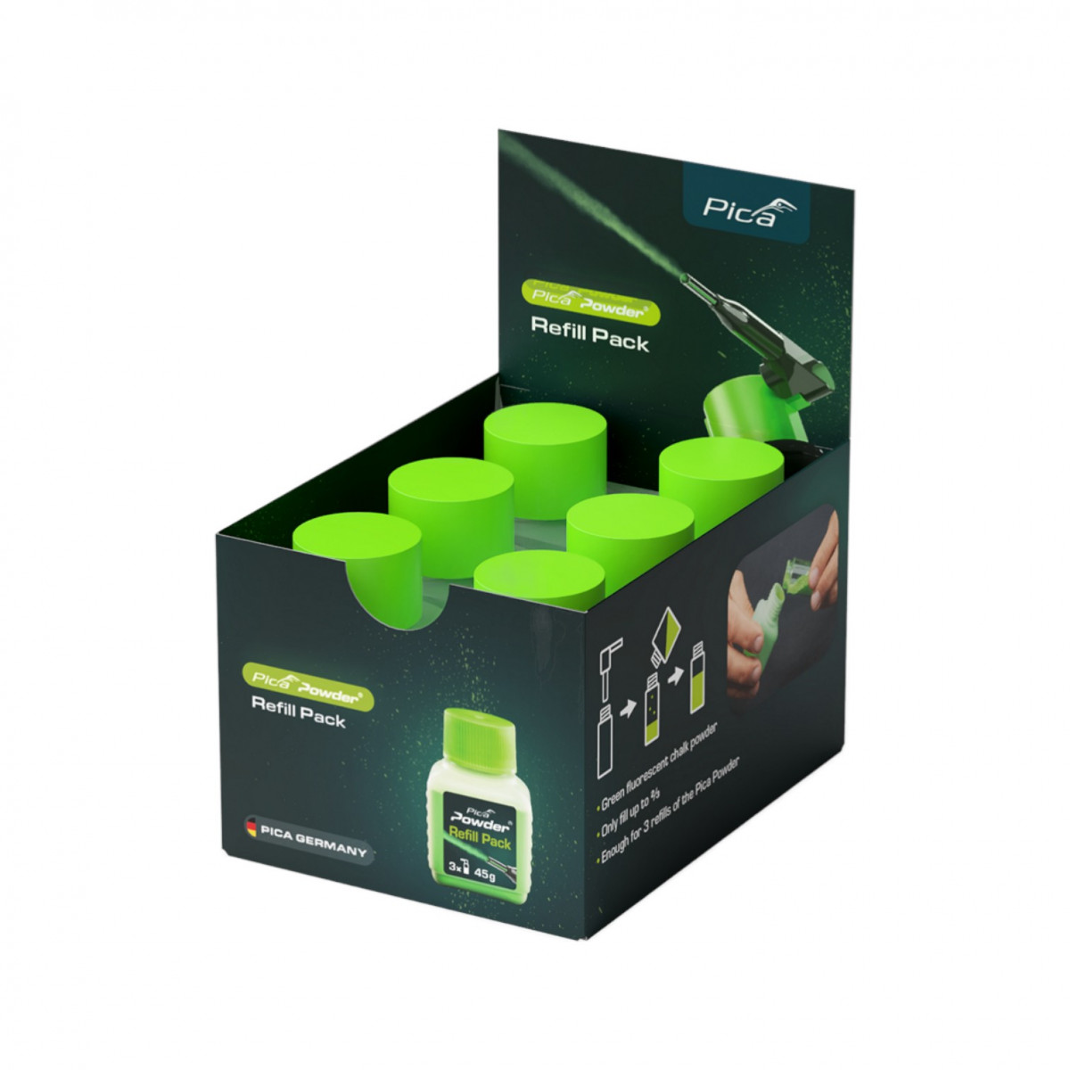 Заправка порошковая PICA Powder Refill Pack, ярко зеленая, меловая, (2030) — это сменная порошковая заправка для сухого мелового маркера PICA Powder. Предназначена для точной и безопасной маркировки глубоких отверстий без использования аэрозолей или давления. Идеально подходит для разметки на разных поверхностях — от кирпича и дерева до металла, стекла и пластика. Благодаря флуоресцентному зеленому цвету метки отчетливо видны даже в темных или запыленных условиях.