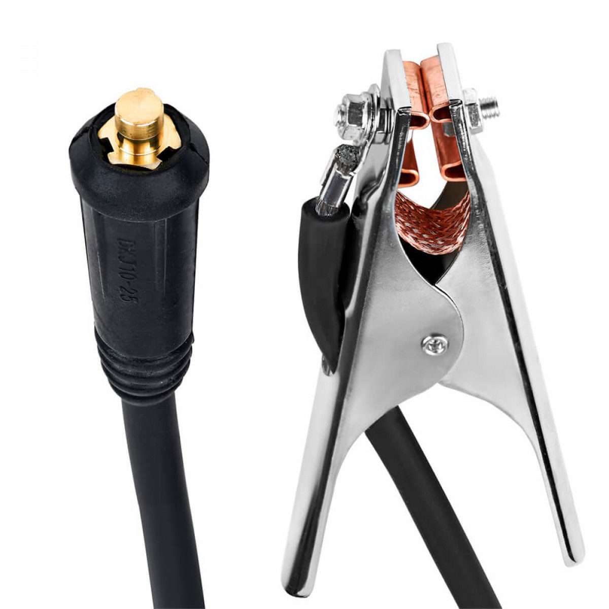 Комплектація: Кабель, затискач маси (зазвичай, типу «крокодил» або струбцина) та силовий роз'єм (байонет, наприклад, 9 мм або 13 мм) для підключення до зварювального апарата.